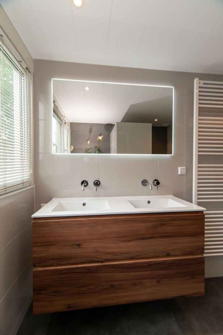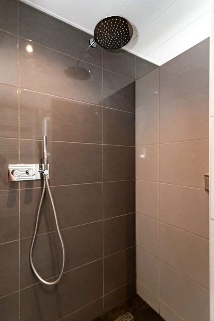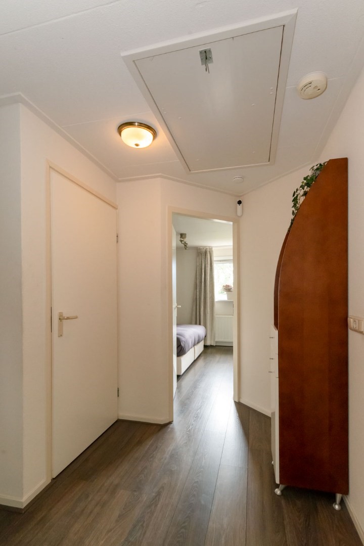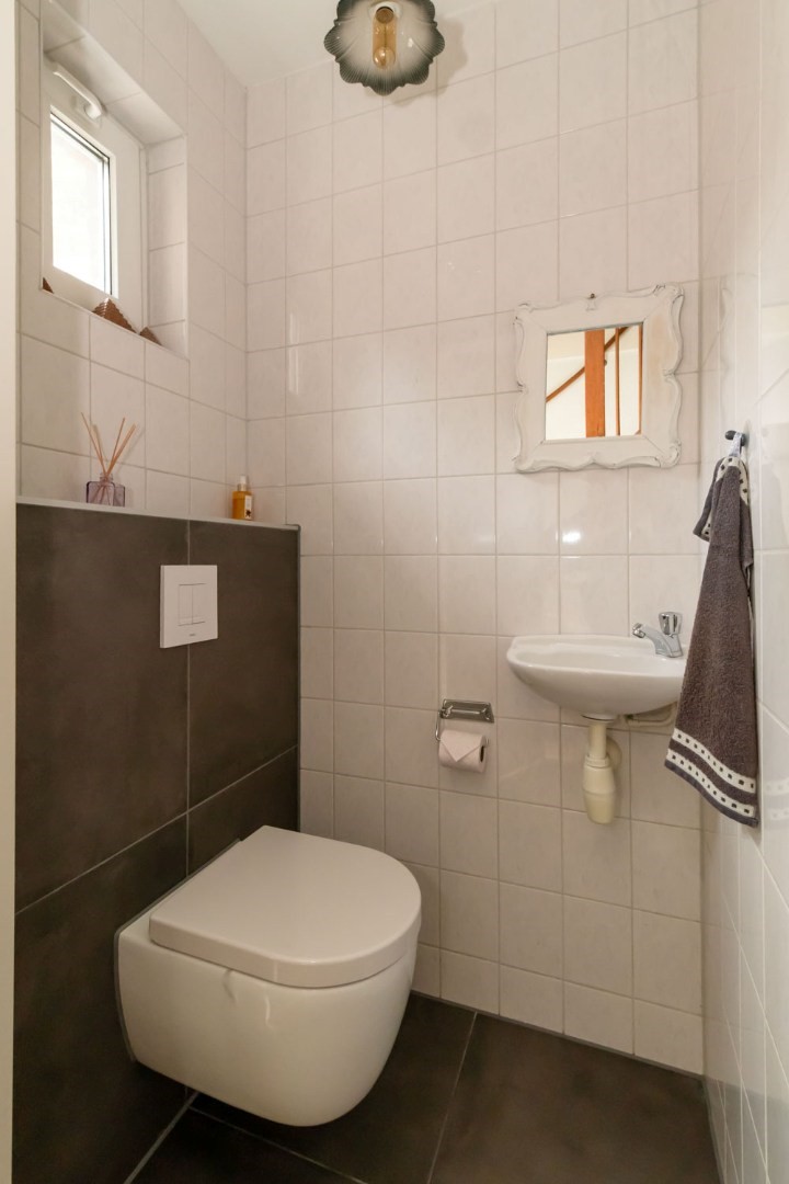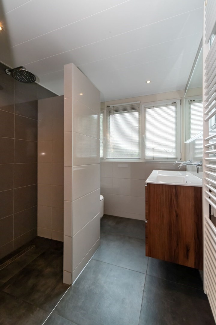 1e Verdieping: overloop, 3 slaapkamers waarvan 1 met heel groot walk-in-closet (4e slaapkamer eenvoudig te realiseren), vernieuwde, volledig betegelde badkamer met royale inloopdouche, luxe meubel met dubbele wastafel, 2e Grohe Japans hangtoilet en extra elektrische designradiator. Grote berging met o.a. Intergas HR combiketel uit 2022.