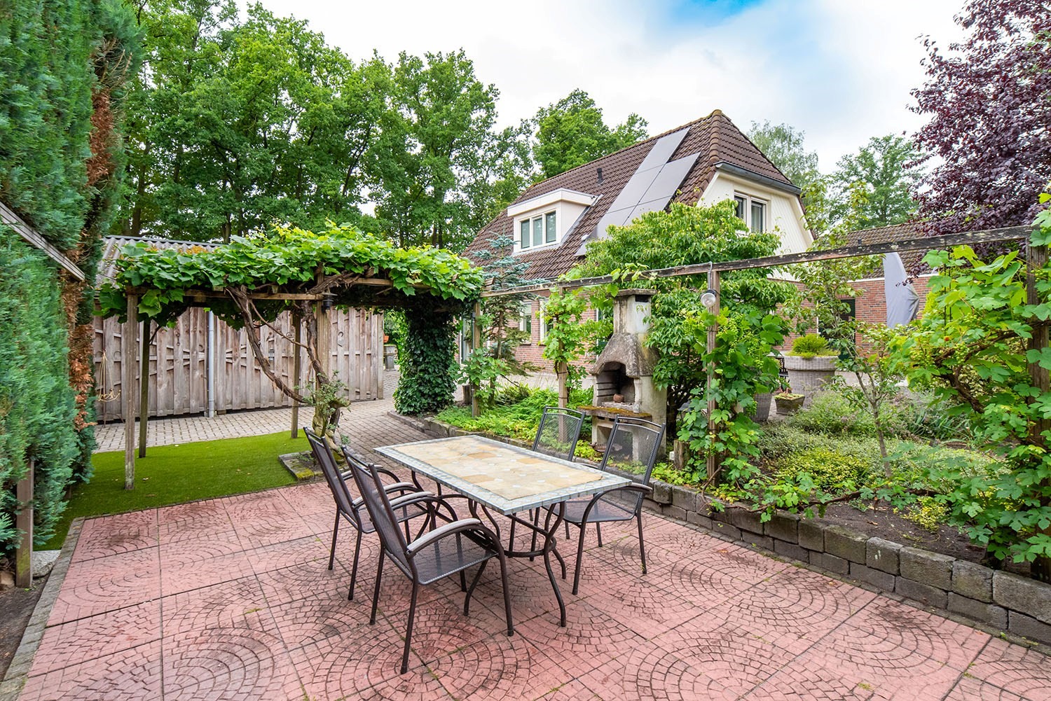 - prachtig aangelegde tuin met fruitbomen en meerdere terrassen