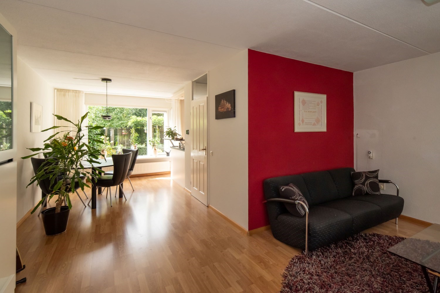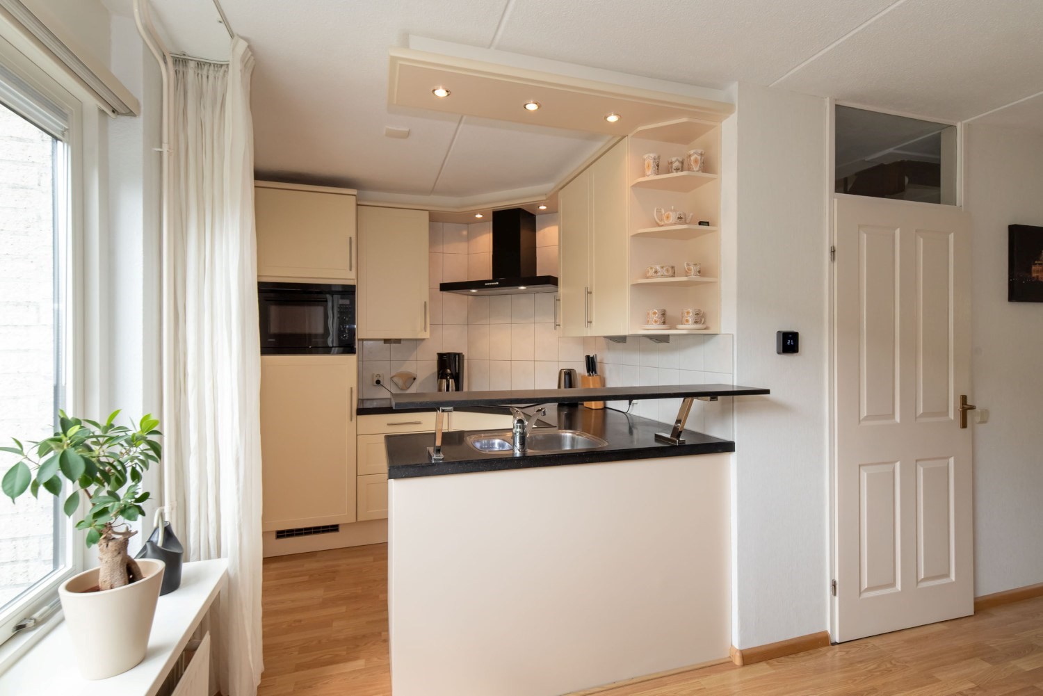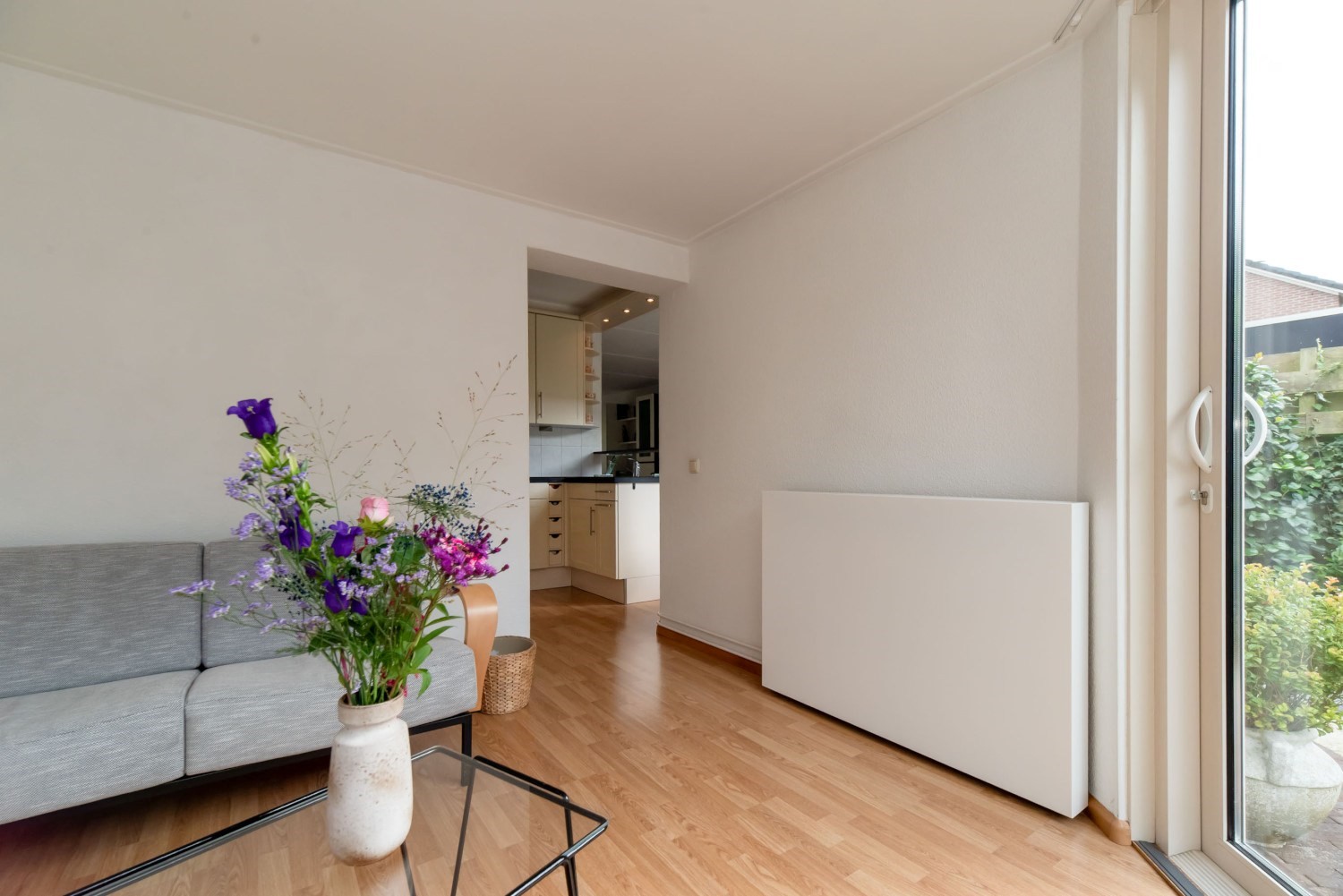Parterre: heel ruimte/lichte entree/hal, uitgebreide meterkast, WC met hangtoilet, fontein en vloerverwarming, ruime woonkamer met erker, halfopen keuken v.z.v. inbouwapparatuur: inductiekookplaat, vaatwasser, combimagnetron, koelkast, afzuigkap. Voorts extra (tuin)kamer met goede zonligging, veel glas en schuifpui naar achtertuin.