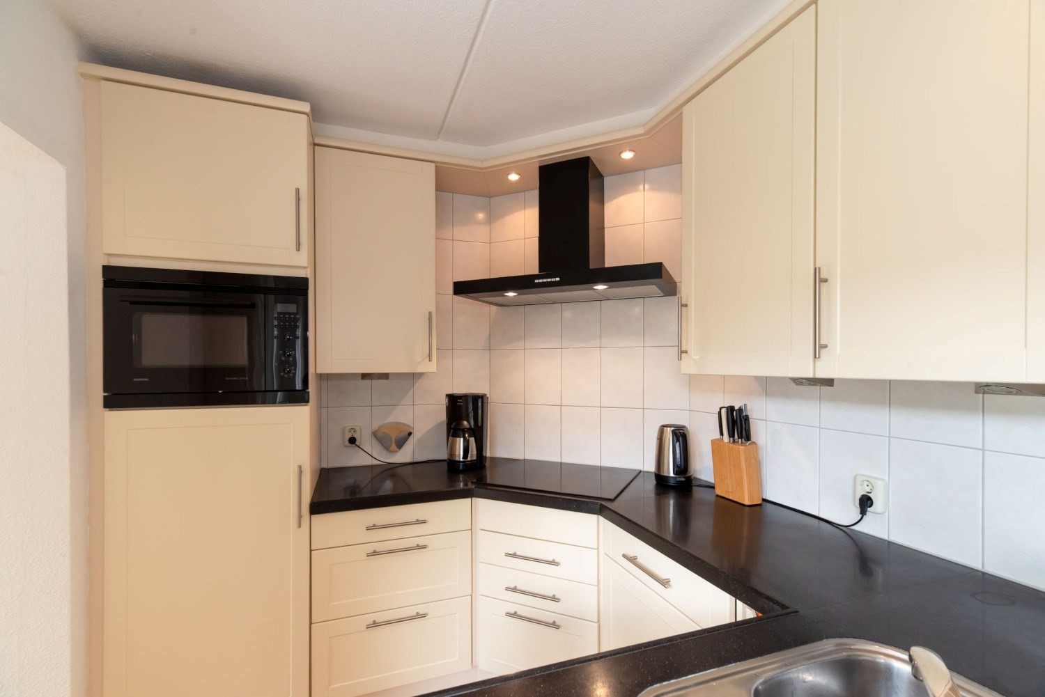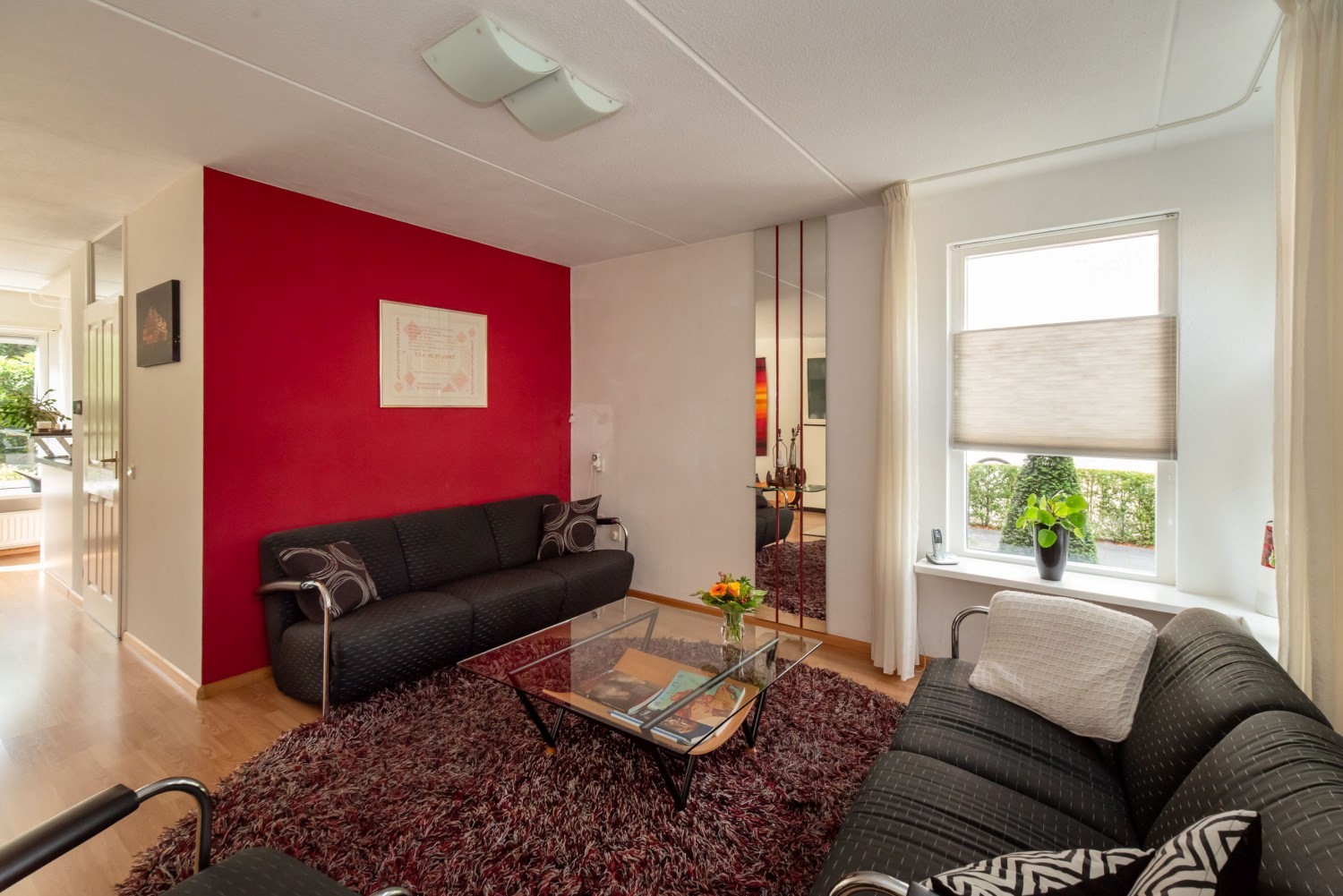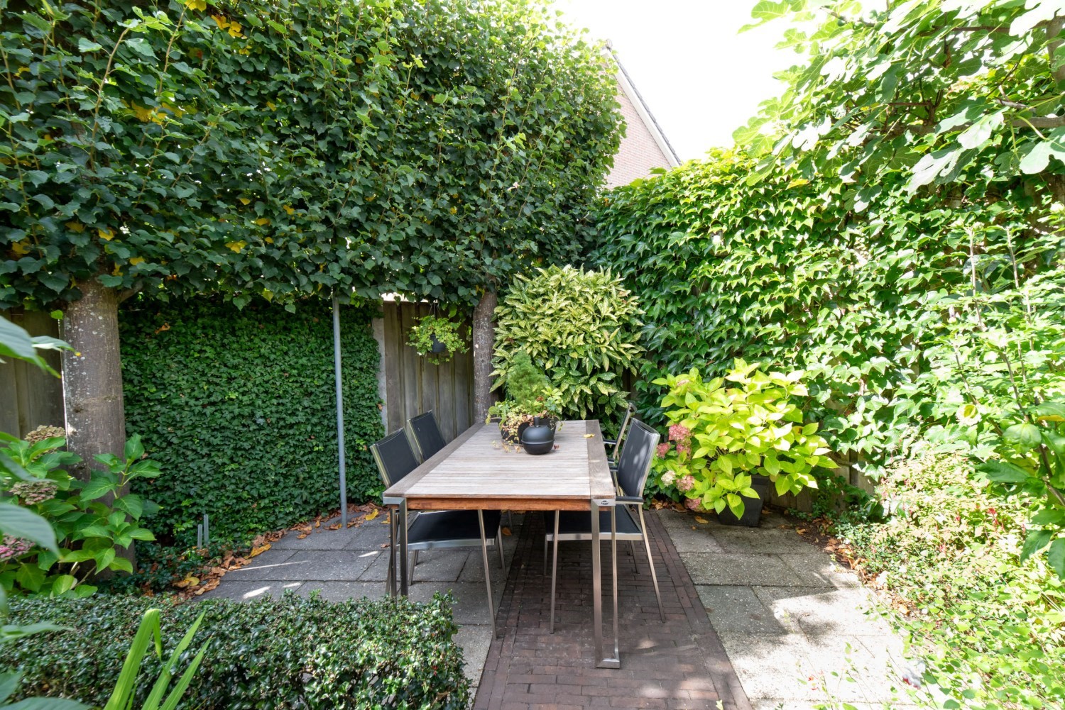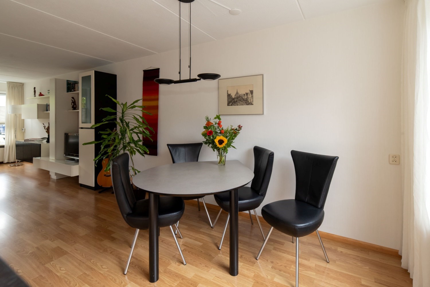 Parterre: heel ruimte/lichte entree/hal, uitgebreide meterkast, WC met hangtoilet, fontein en vloerverwarming, ruime woonkamer met erker, halfopen keuken v.z.v. inbouwapparatuur: inductiekookplaat, vaatwasser, combimagnetron, koelkast, afzuigkap. Voorts extra (tuin)kamer met goede zonligging, veel glas en schuifpui naar achtertuin.