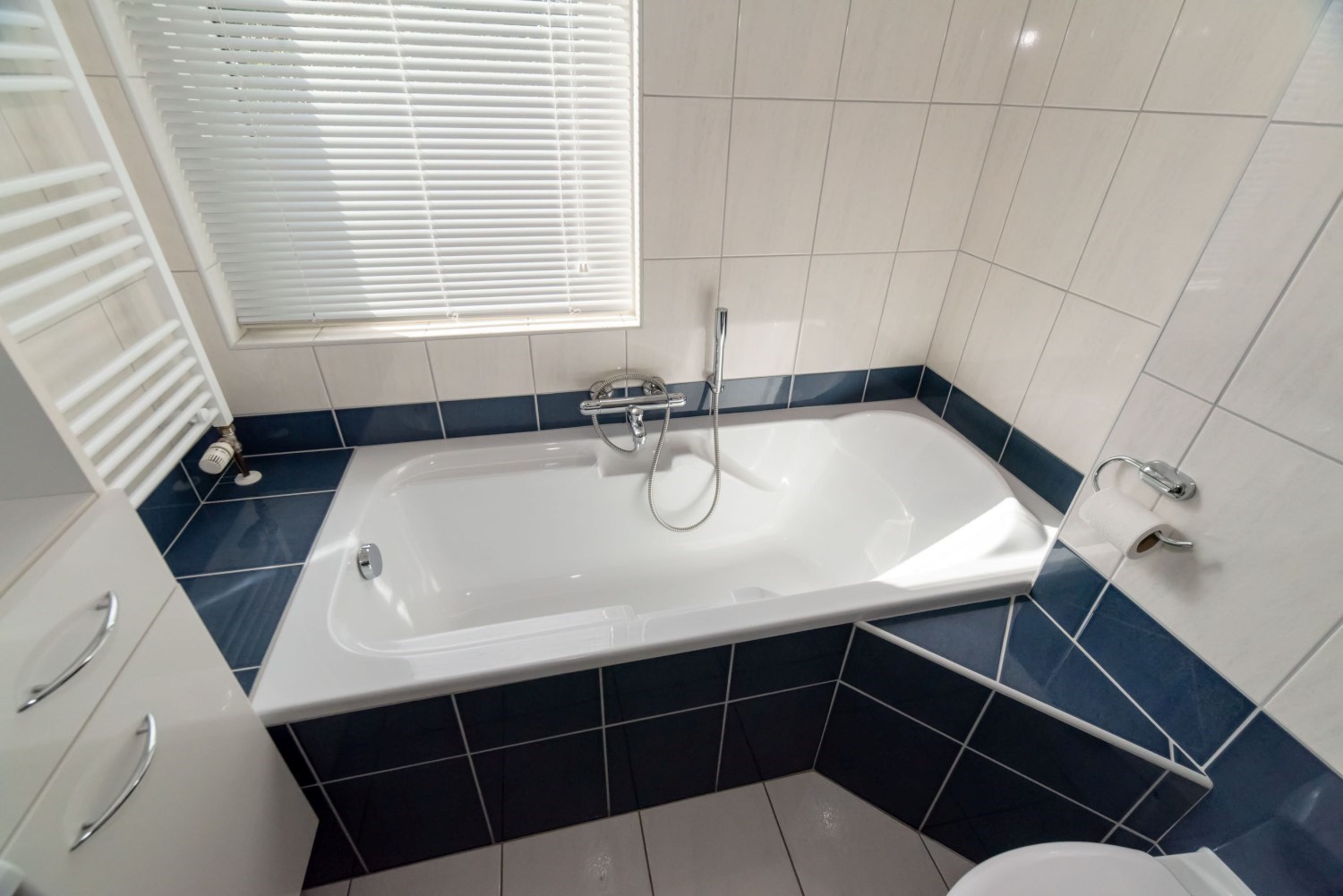1e Verdieping: overloop, 3 slaapkamers waarvan 1 met balkon, badkamerinrichting met wastafel, vaste kasten, ligbad, douchecabine, hangtoilet, en designradiator.