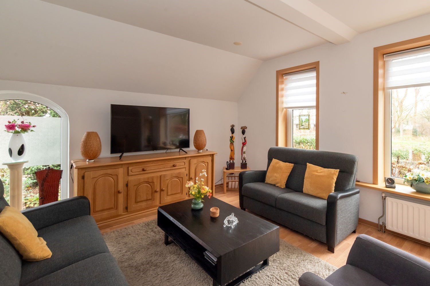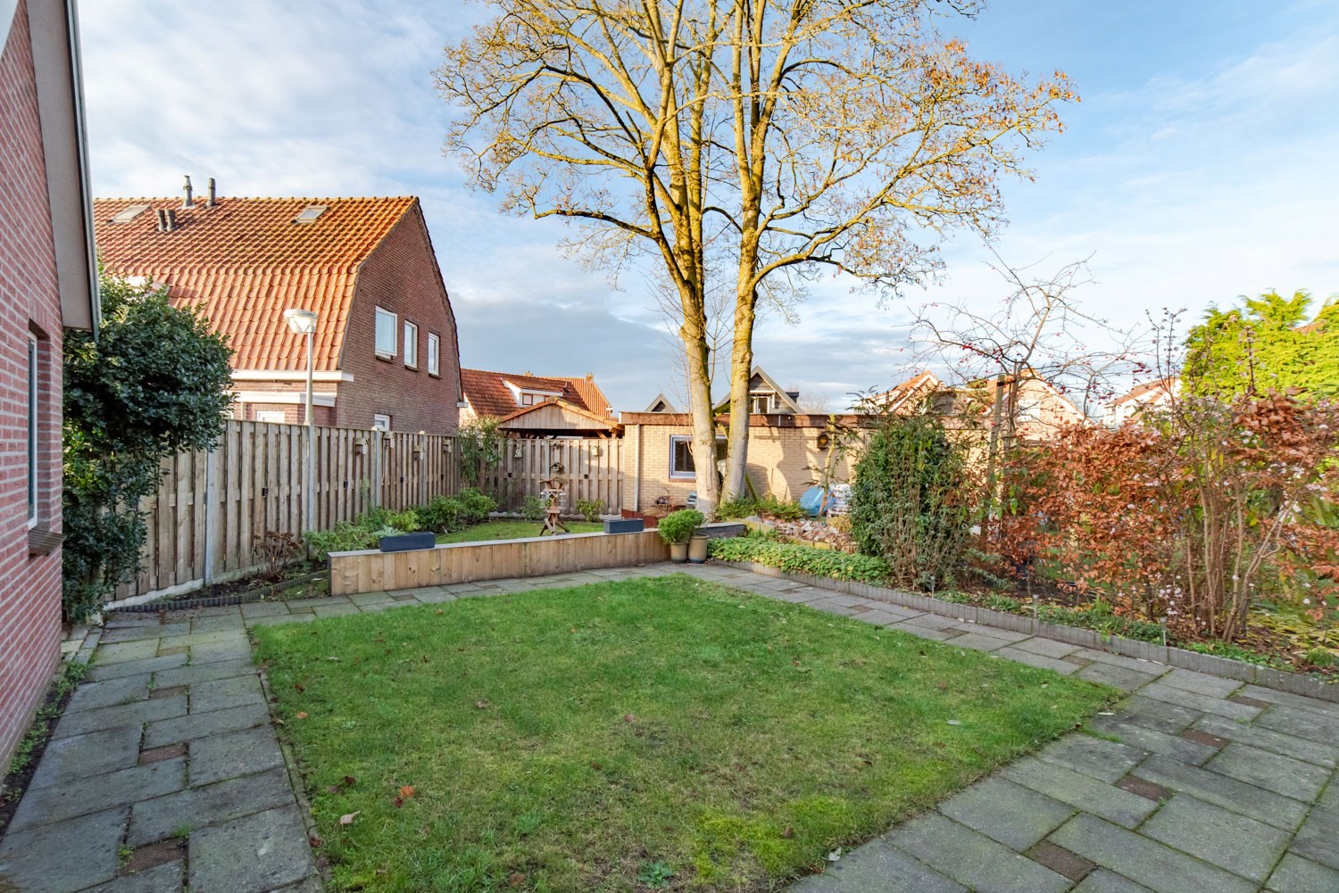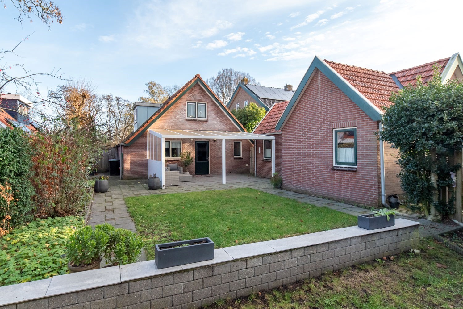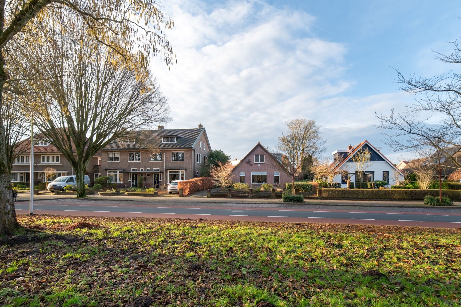Uitstekend gesitueerd, direct bij centrum en tegenover groen, verbouwd / vergroot vrijstaand woonhuis, met o.a. grote vrijstaande garage / berging / hobbyruimte (L-vormig) en tuin rondom.