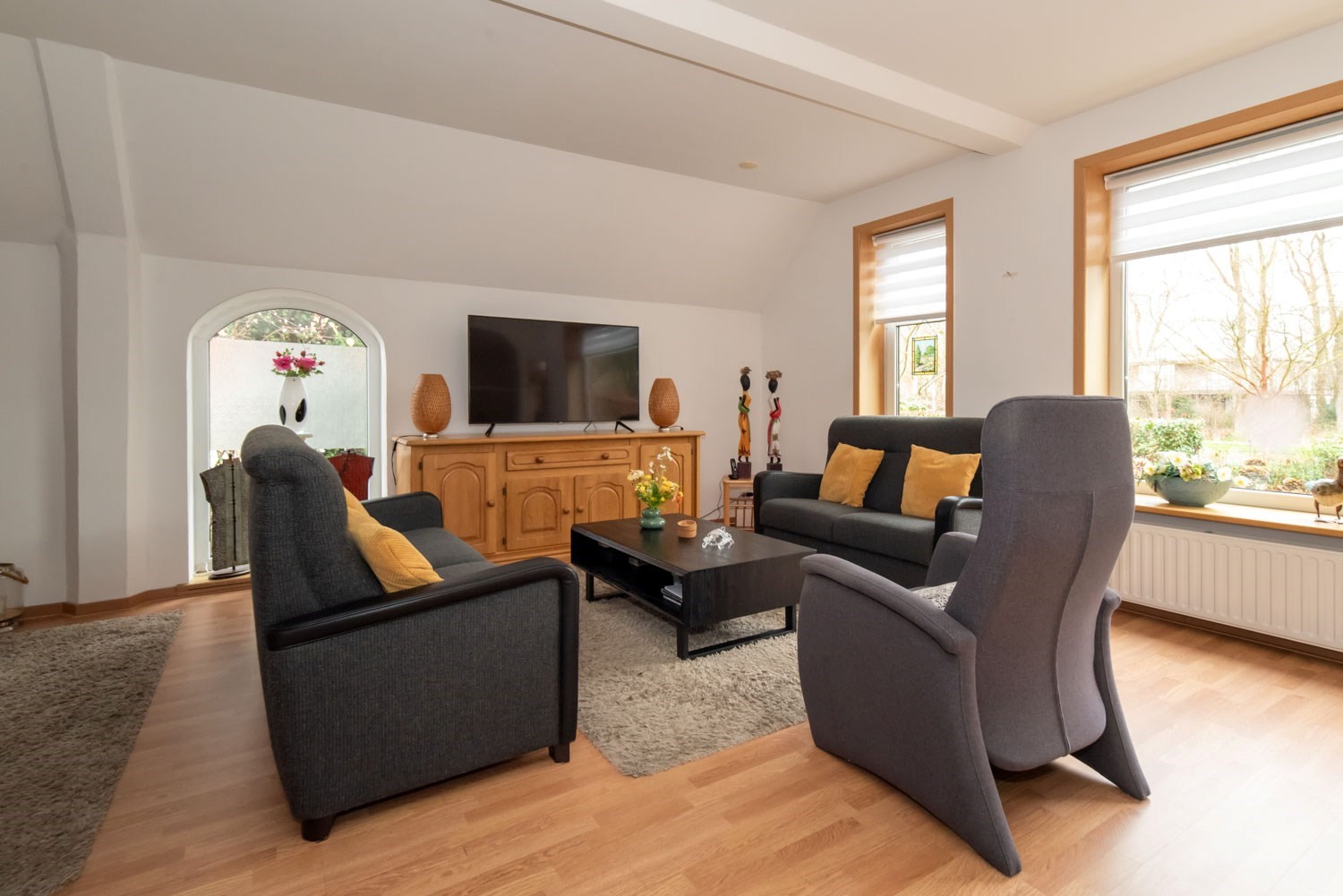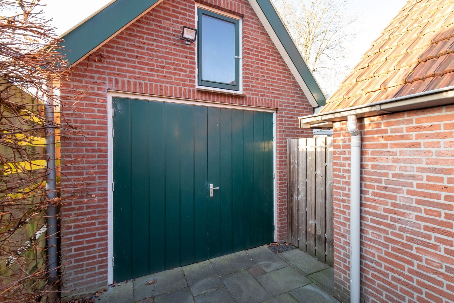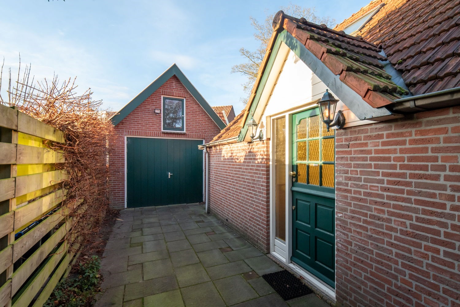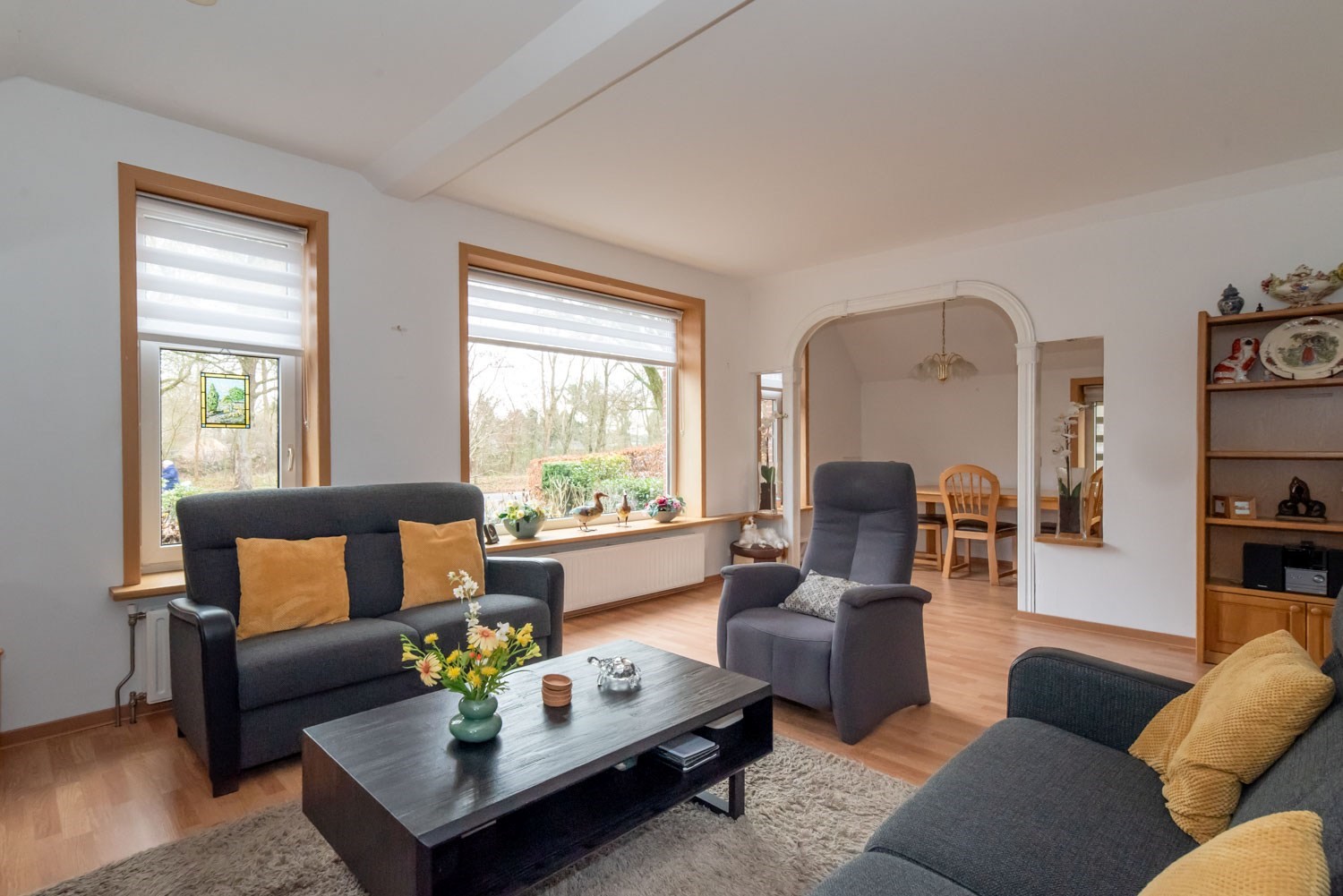 Uitstekend gesitueerd, direct bij centrum en tegenover groen, verbouwd / vergroot vrijstaand woonhuis, met o.a. grote vrijstaande garage / berging / hobbyruimte (L-vormig) en tuin rondom.