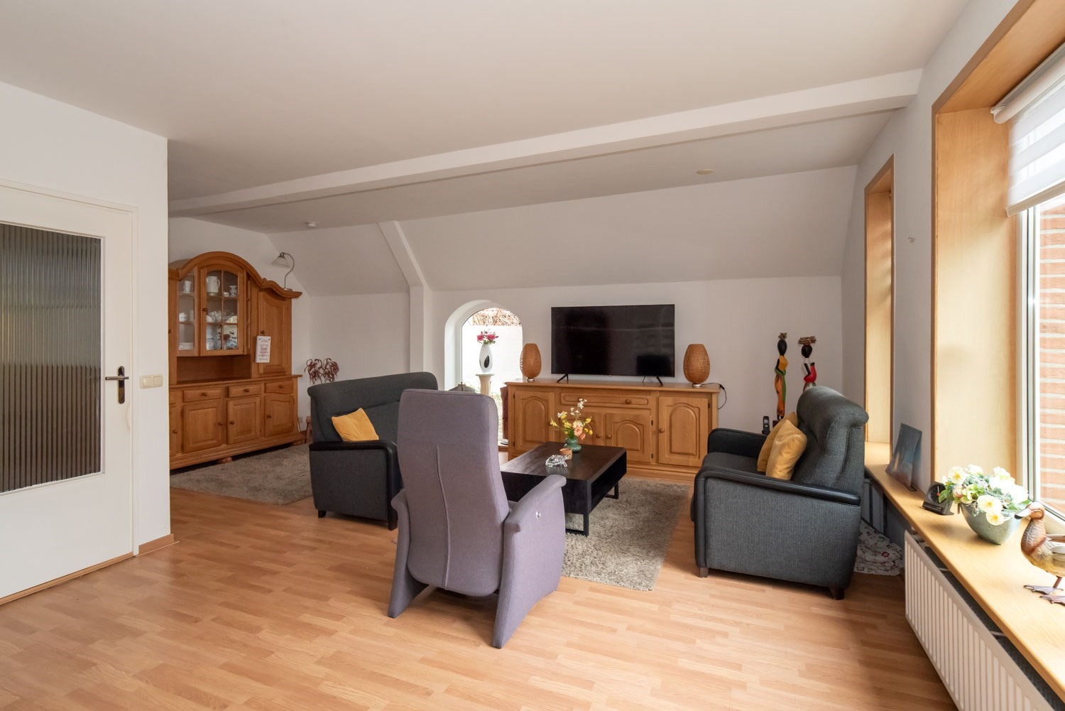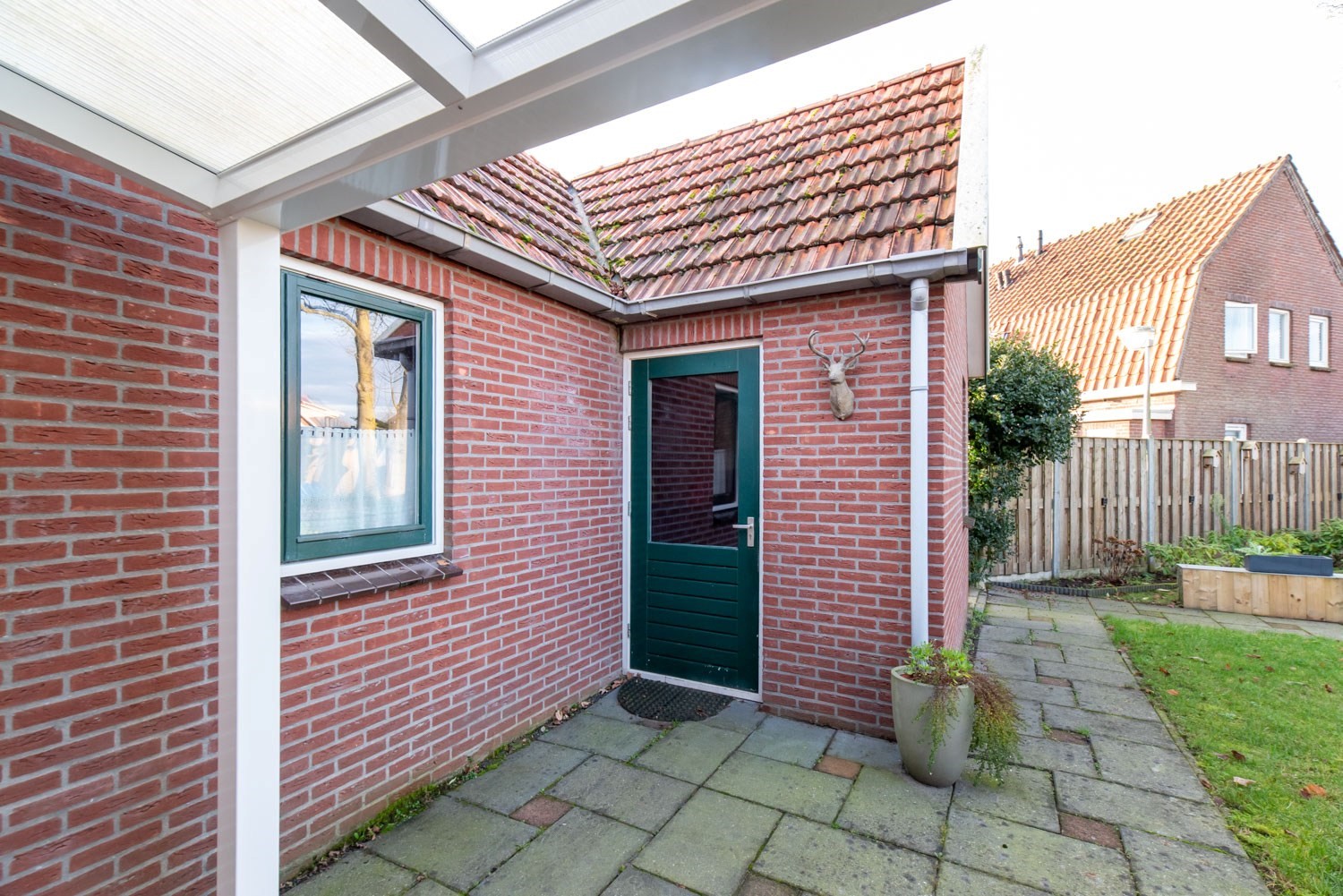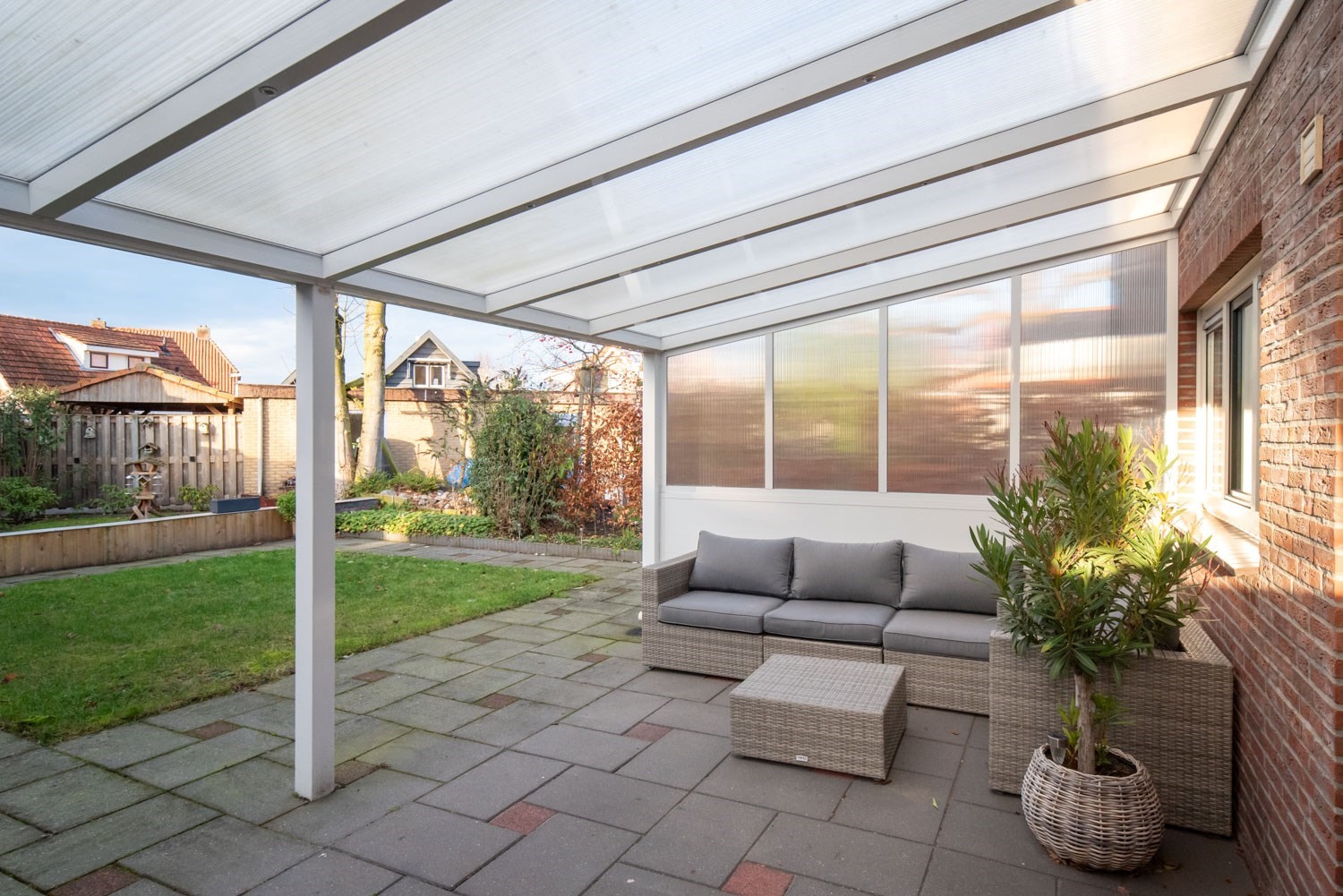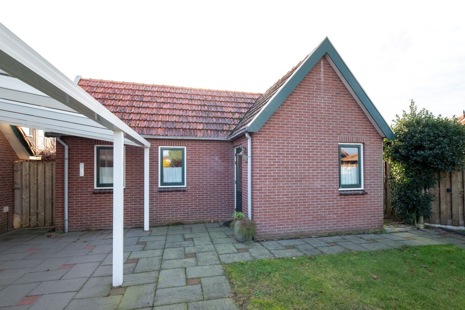 Uitstekend gesitueerd, direct bij centrum en tegenover groen, verbouwd / vergroot vrijstaand woonhuis, met o.a. grote vrijstaande garage / berging / hobbyruimte (L-vormig) en tuin rondom.