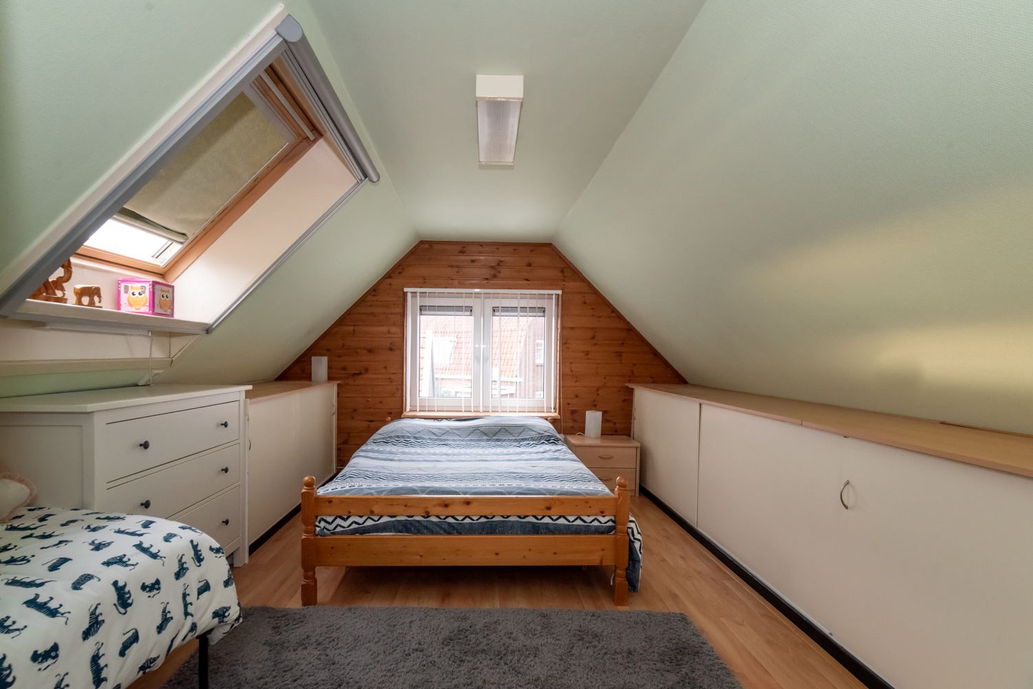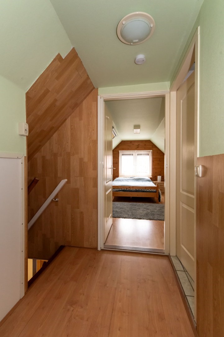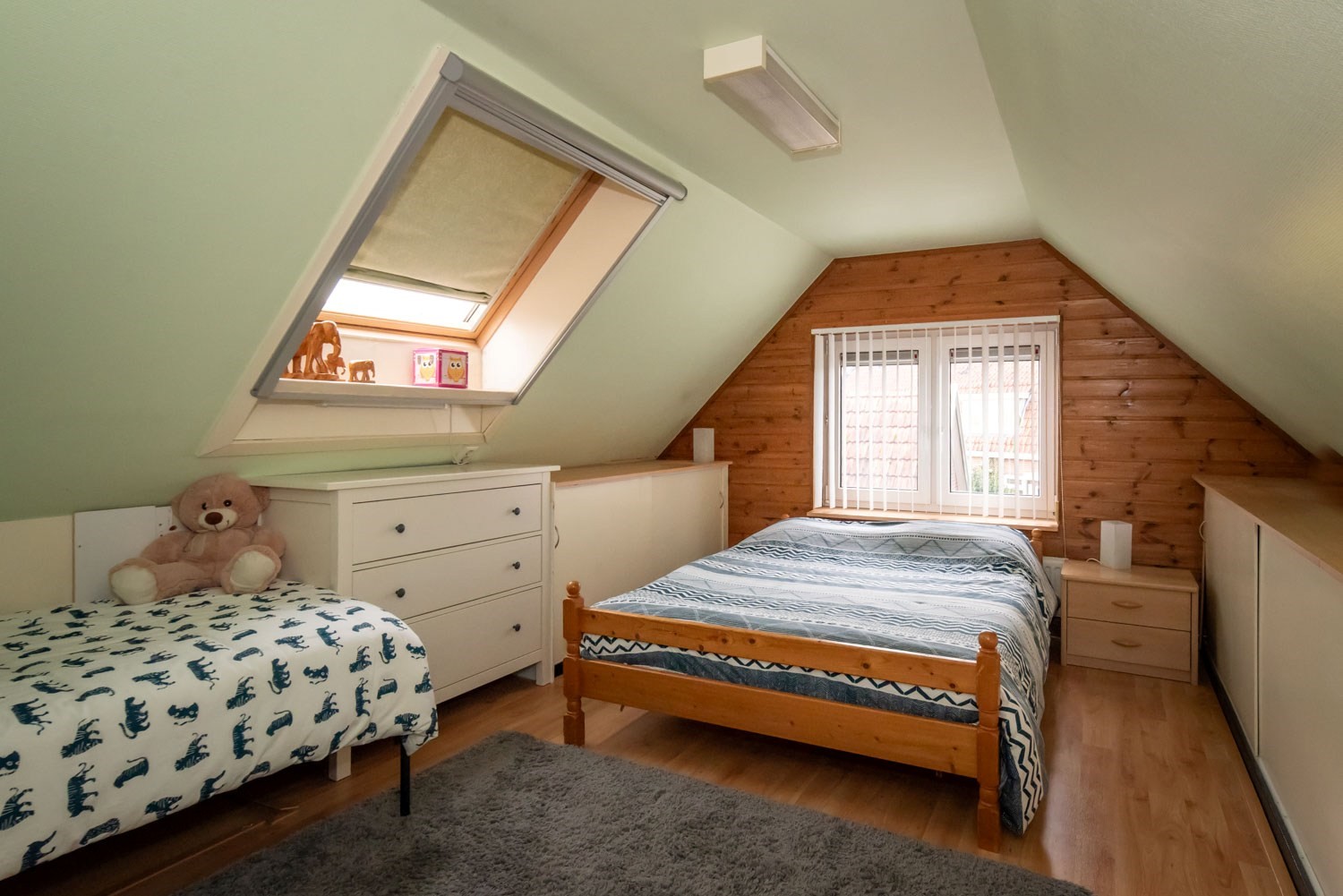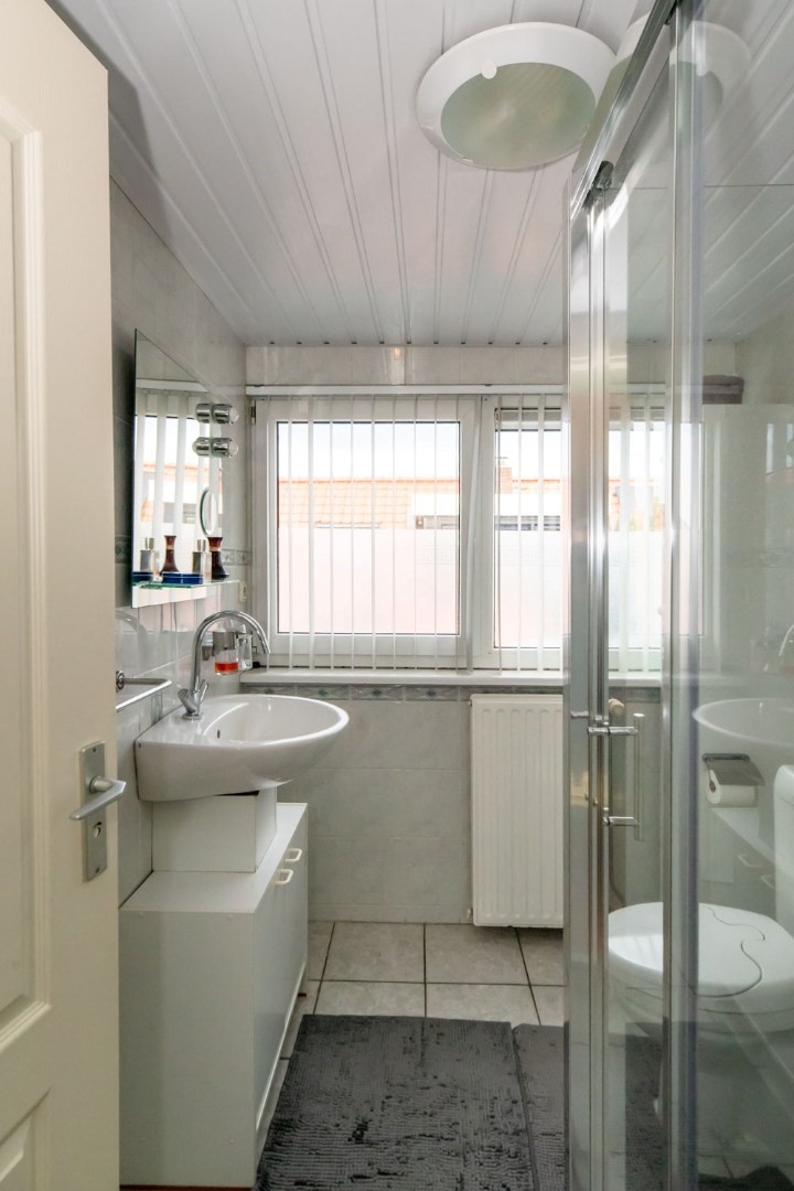 1e Verdieping: overloop, cv-ruimte, vaste kasten, 2 royale slaapkamers, badkamer met dakkapel douchecabine, wastafel en toilet.