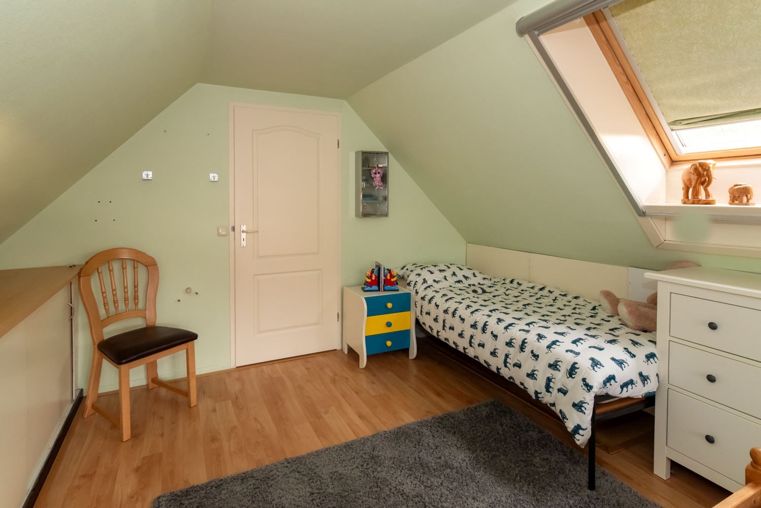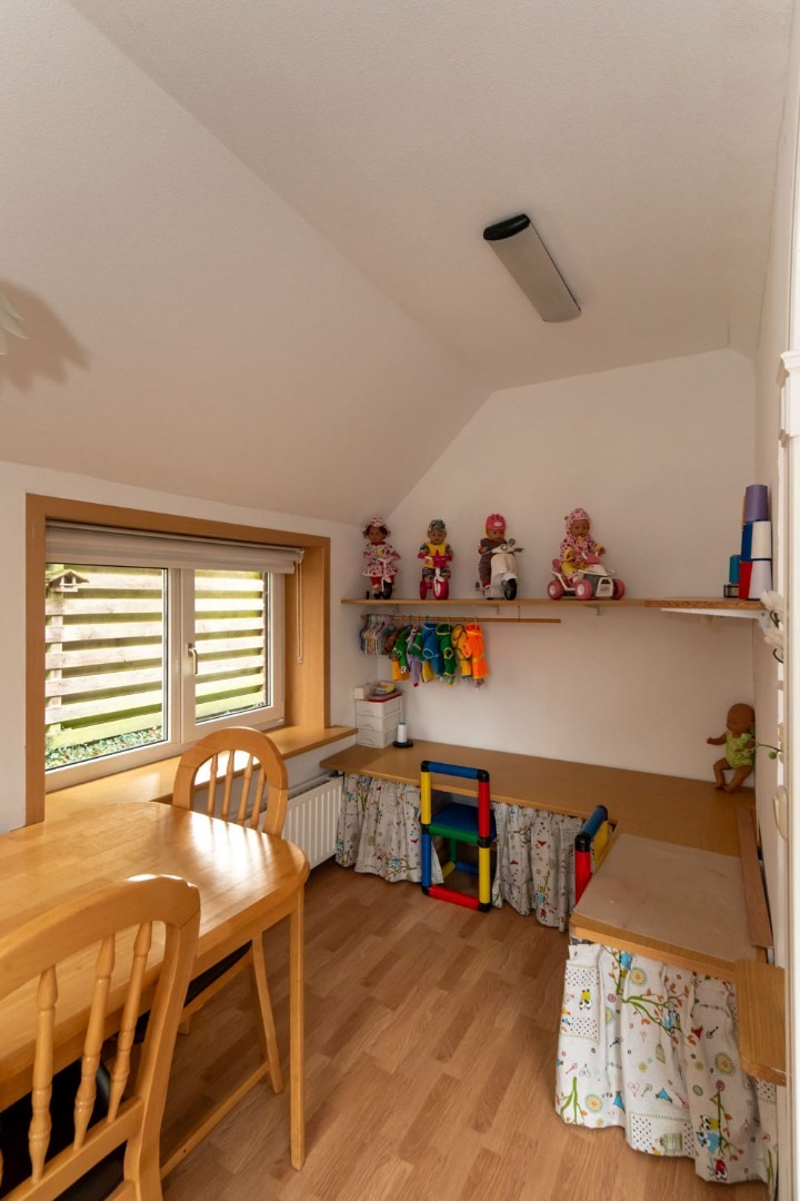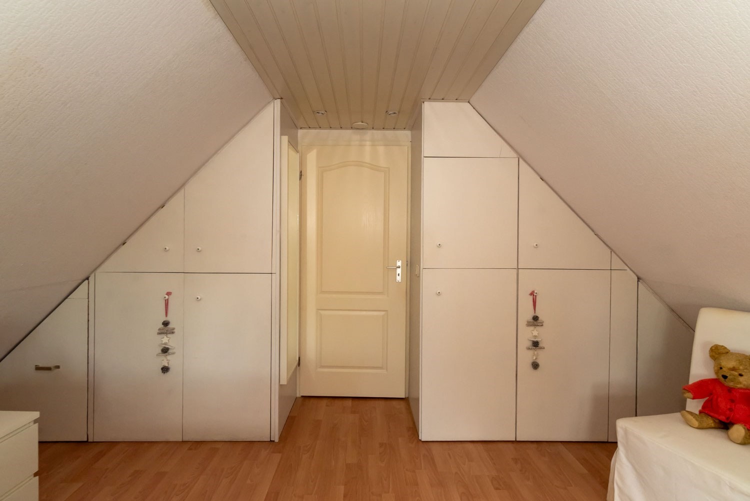 1e Verdieping: overloop, cv-ruimte, vaste kasten, 2 royale slaapkamers, badkamer met dakkapel douchecabine, wastafel en toilet.