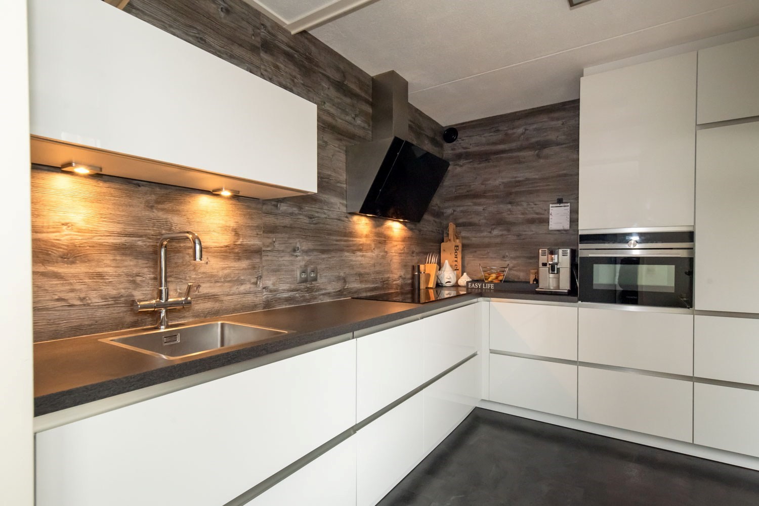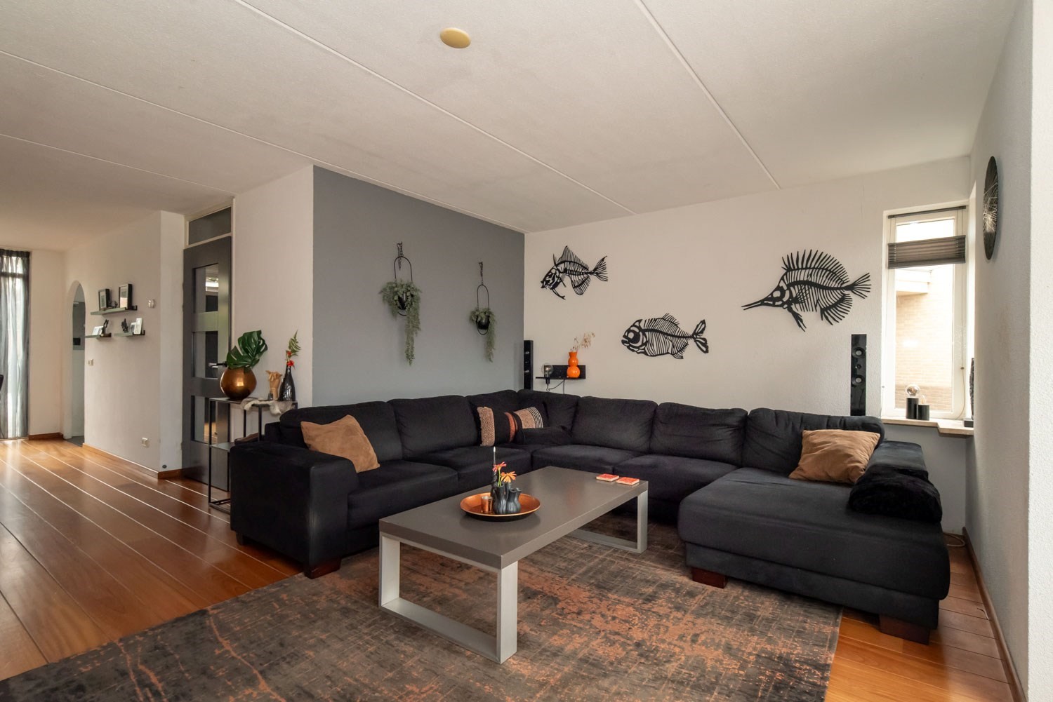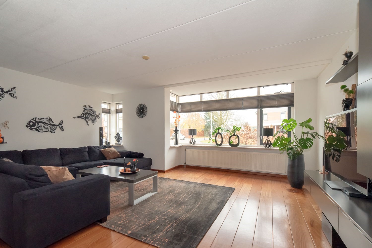 Parterre: entree/hal, uitgebreide meterkast, garderobenis, vernieuwd hangtoilet met fontein. Heel royale woonkamer met erker en prachtige massief houten vloer (Jatoba) en tuindeuren naar terras en tuin, halfopen keuken voorzien van moderne, hoogglans inrichting v.z.v. inductiekookplaat, afzuigkap, koelkast, oven met magnetronfunctie, Bosch vaatwasser (Zeolith functie, bouwjaar november 2025!) en een zo goed als nieuwe quooker (2025). Voorts bijkeuken / achterentree en een inpandig bereikbare garage.