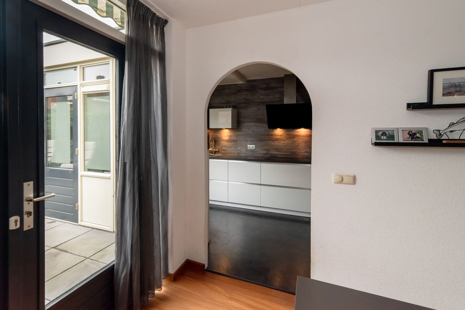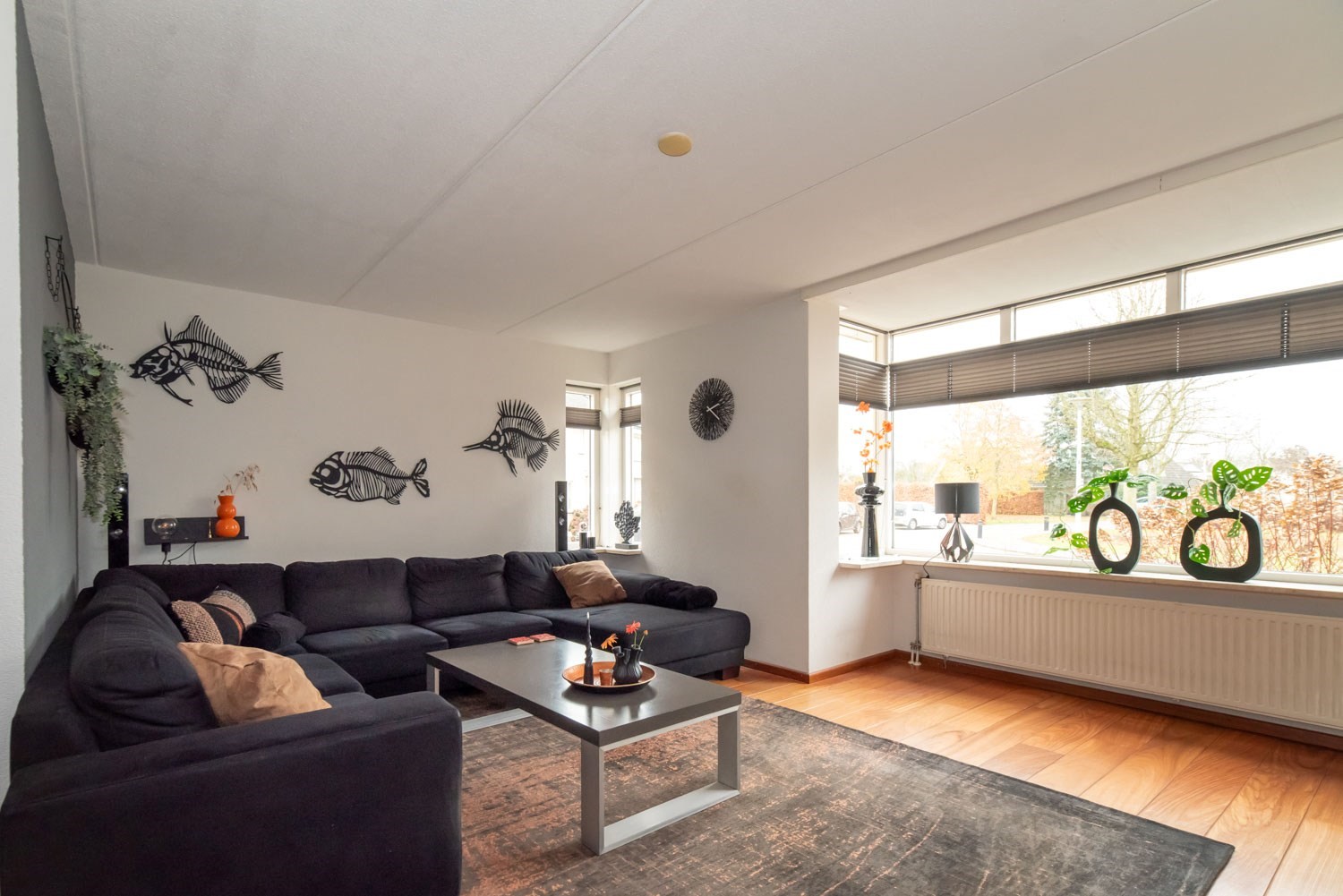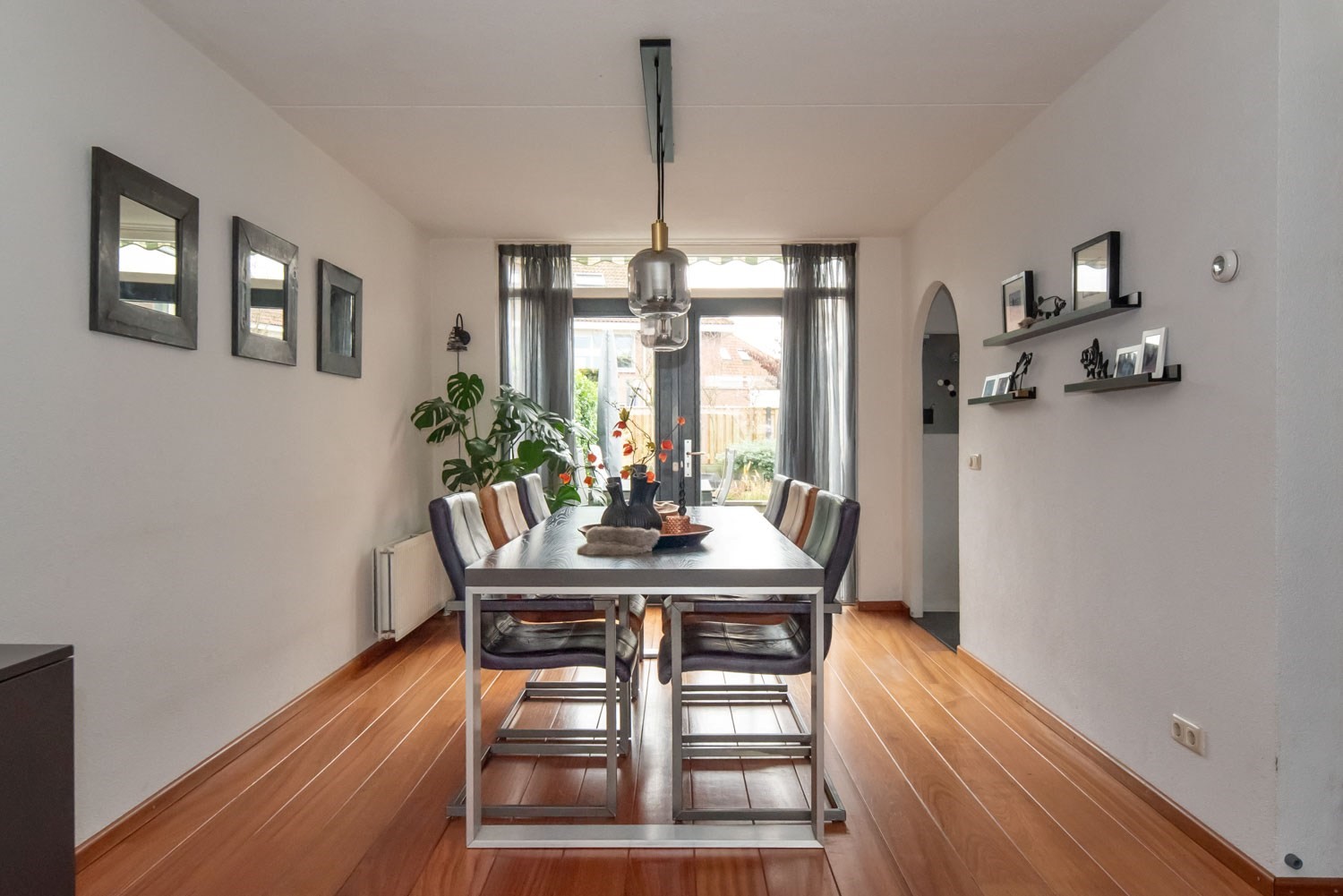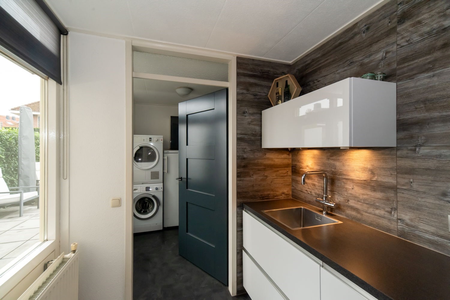 Parterre: entree/hal, uitgebreide meterkast, garderobenis, vernieuwd hangtoilet met fontein. Heel royale woonkamer met erker en prachtige massief houten vloer (Jatoba) en tuindeuren naar terras en tuin, halfopen keuken voorzien van moderne, hoogglans inrichting v.z.v. inductiekookplaat, afzuigkap, koelkast, oven met magnetronfunctie, Bosch vaatwasser (Zeolith functie, bouwjaar november 2025!) en een zo goed als nieuwe quooker (2025). Voorts bijkeuken / achterentree en een inpandig bereikbare garage.