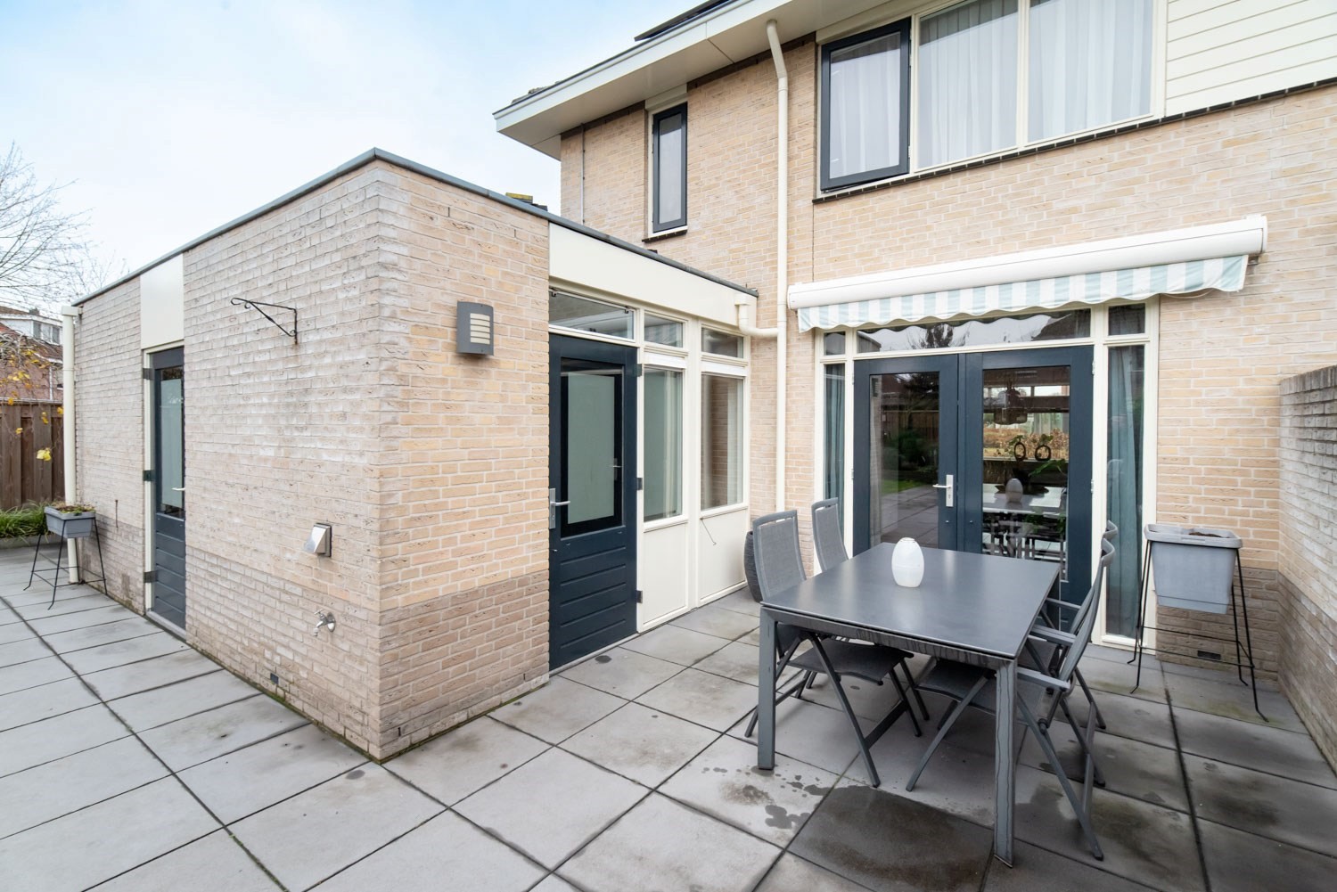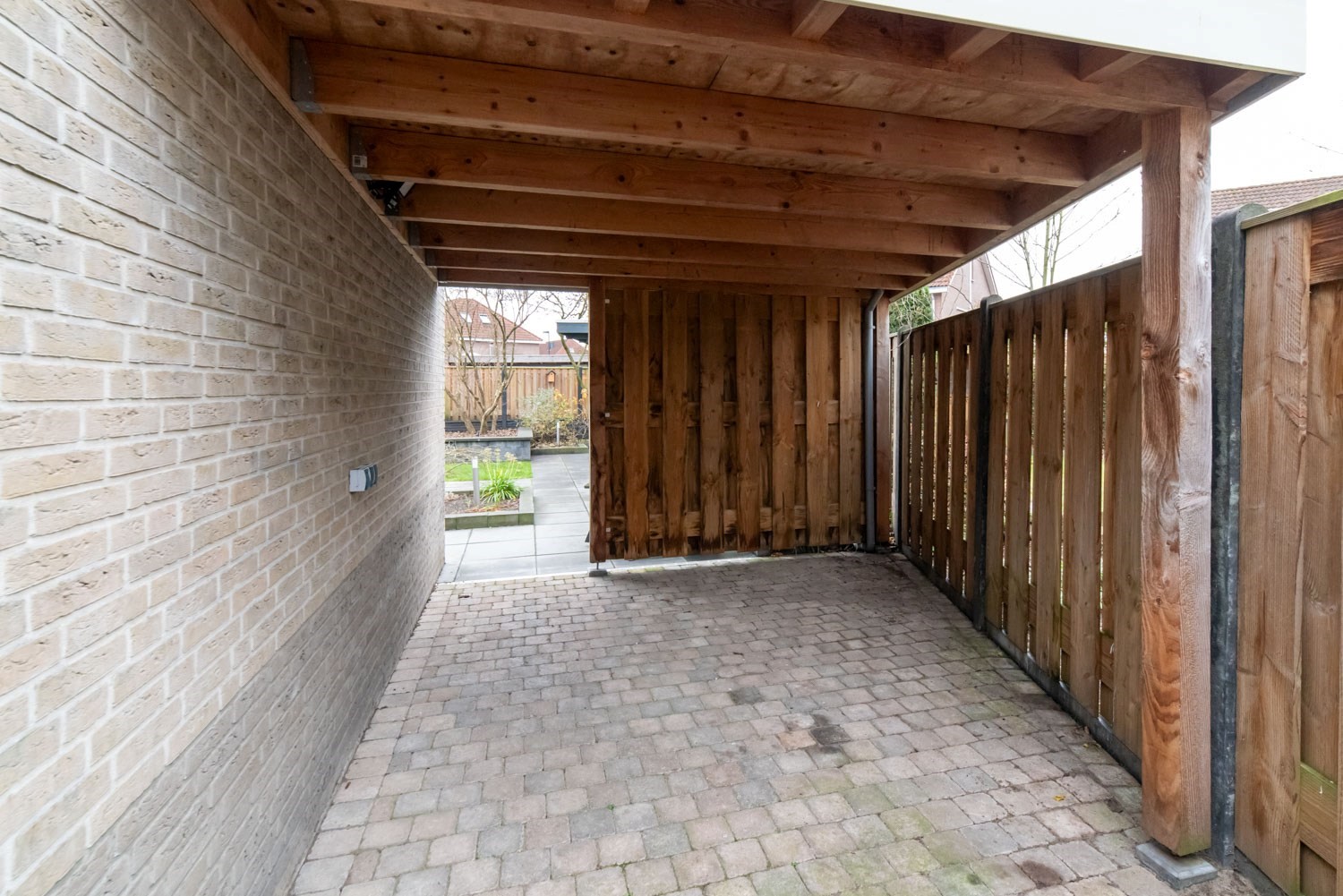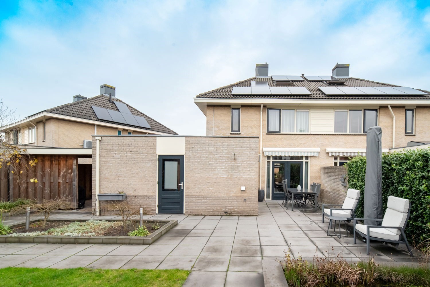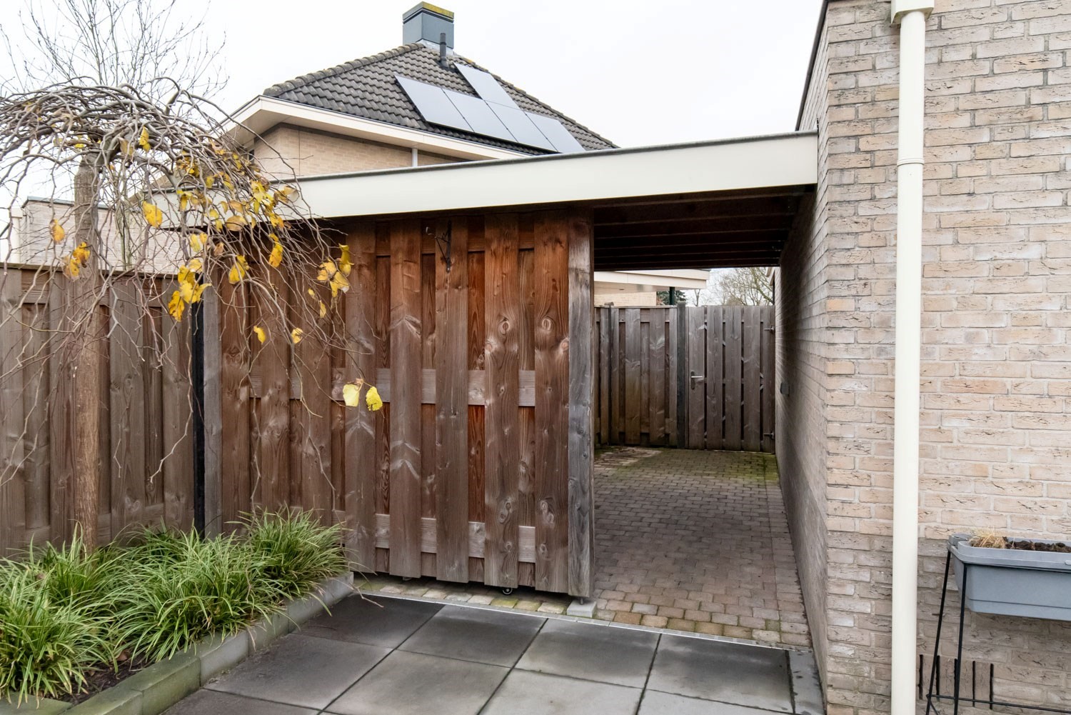Uitstekend gesitueerd (rustige straat, tegenover openbaar groen, royaler perceel, achter op zuiden, parkeren op eigen kavel), halfvrijstaand herenhuis / erkerwoning met o.a. inpandig bereikbare garage, carport, voortuin, achtertuin op zuiden. Voorts bike-/motorport en een fraaie veranda met een extra berging in de achtertuin.