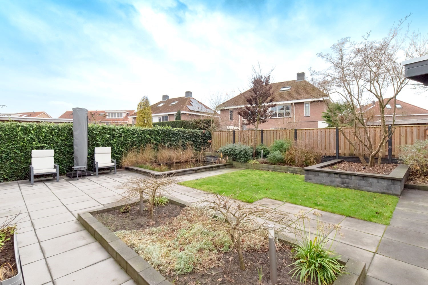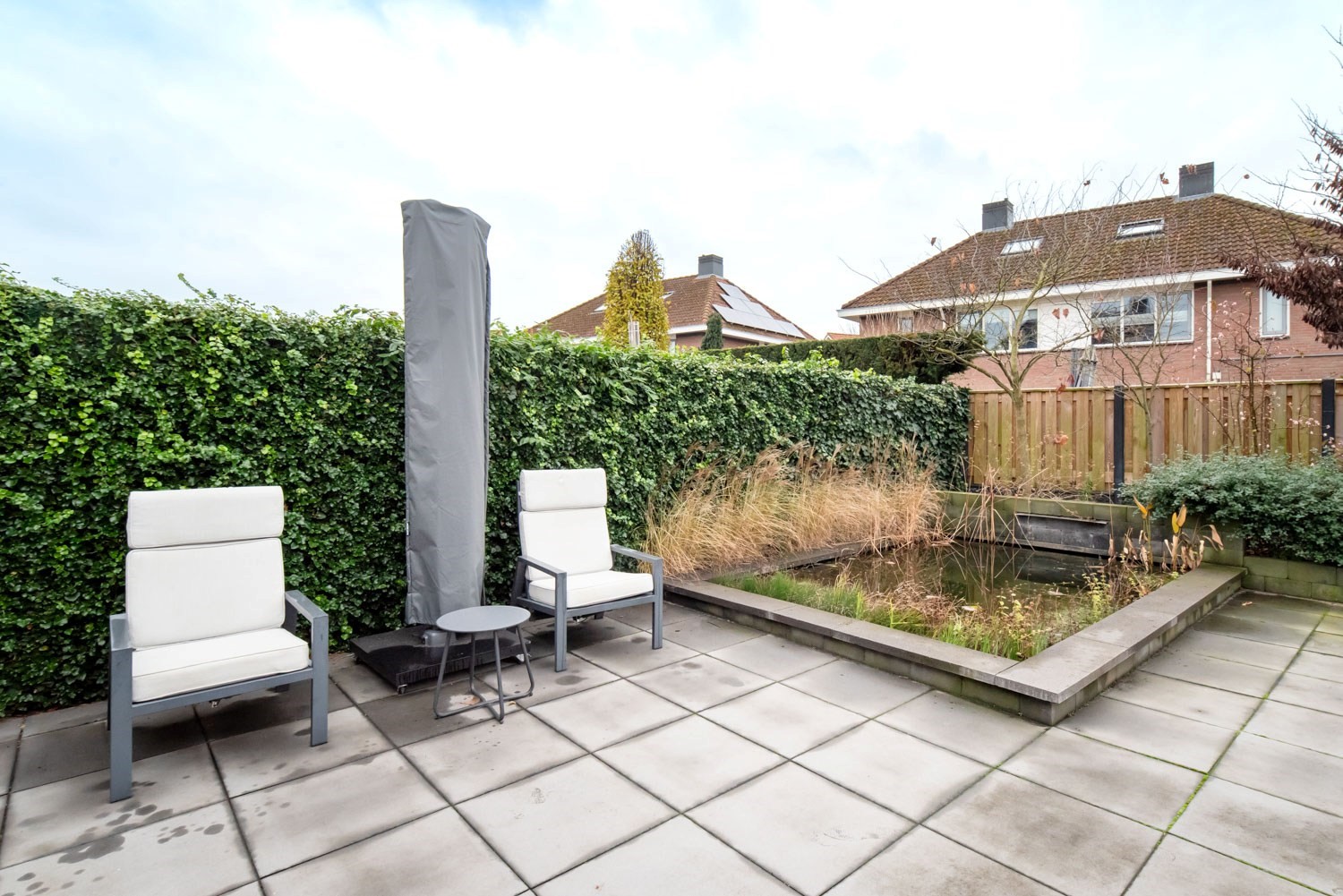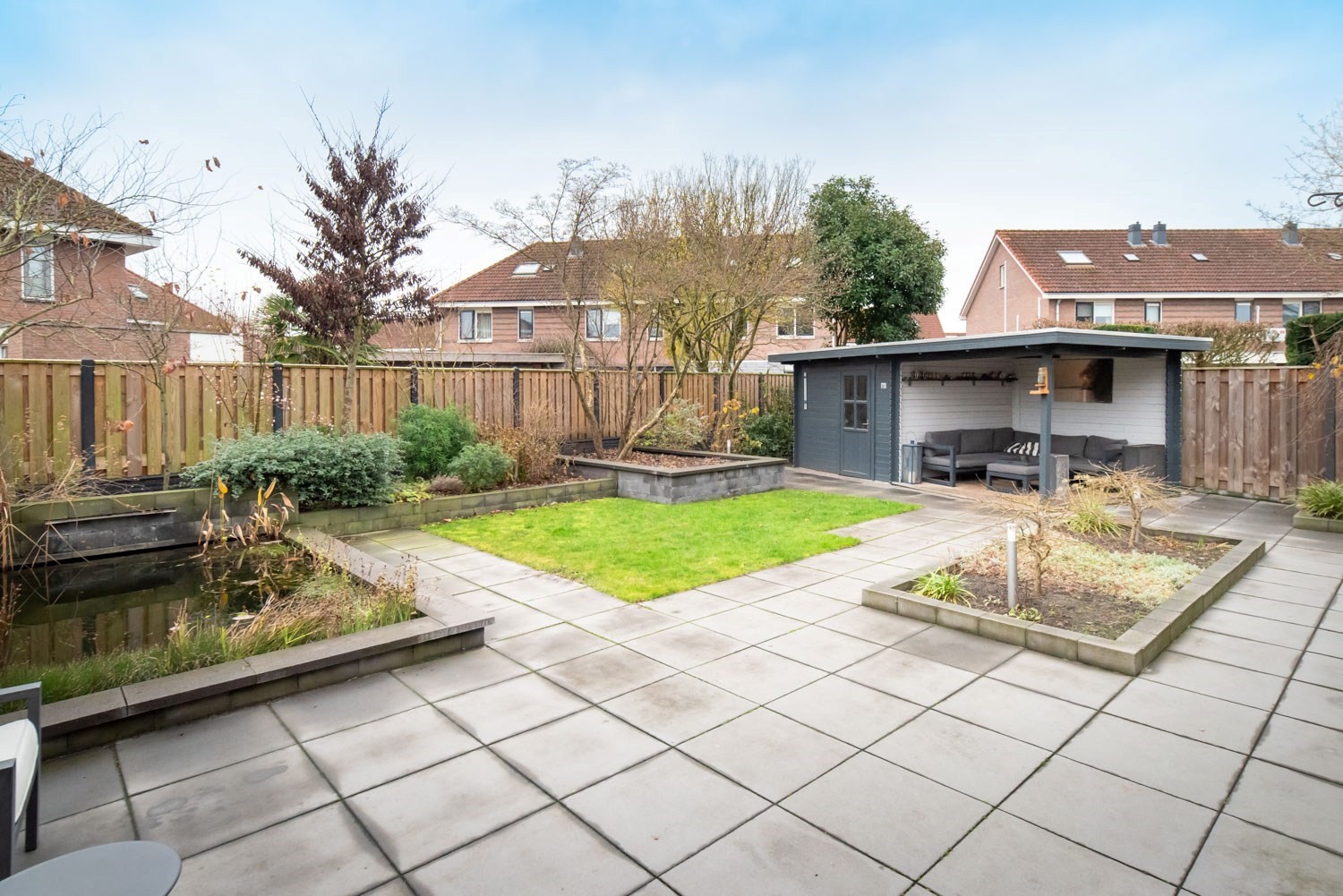 - achtertuin op zuiden: royaal, met veranda, vijverpartij en fraai straatwerk