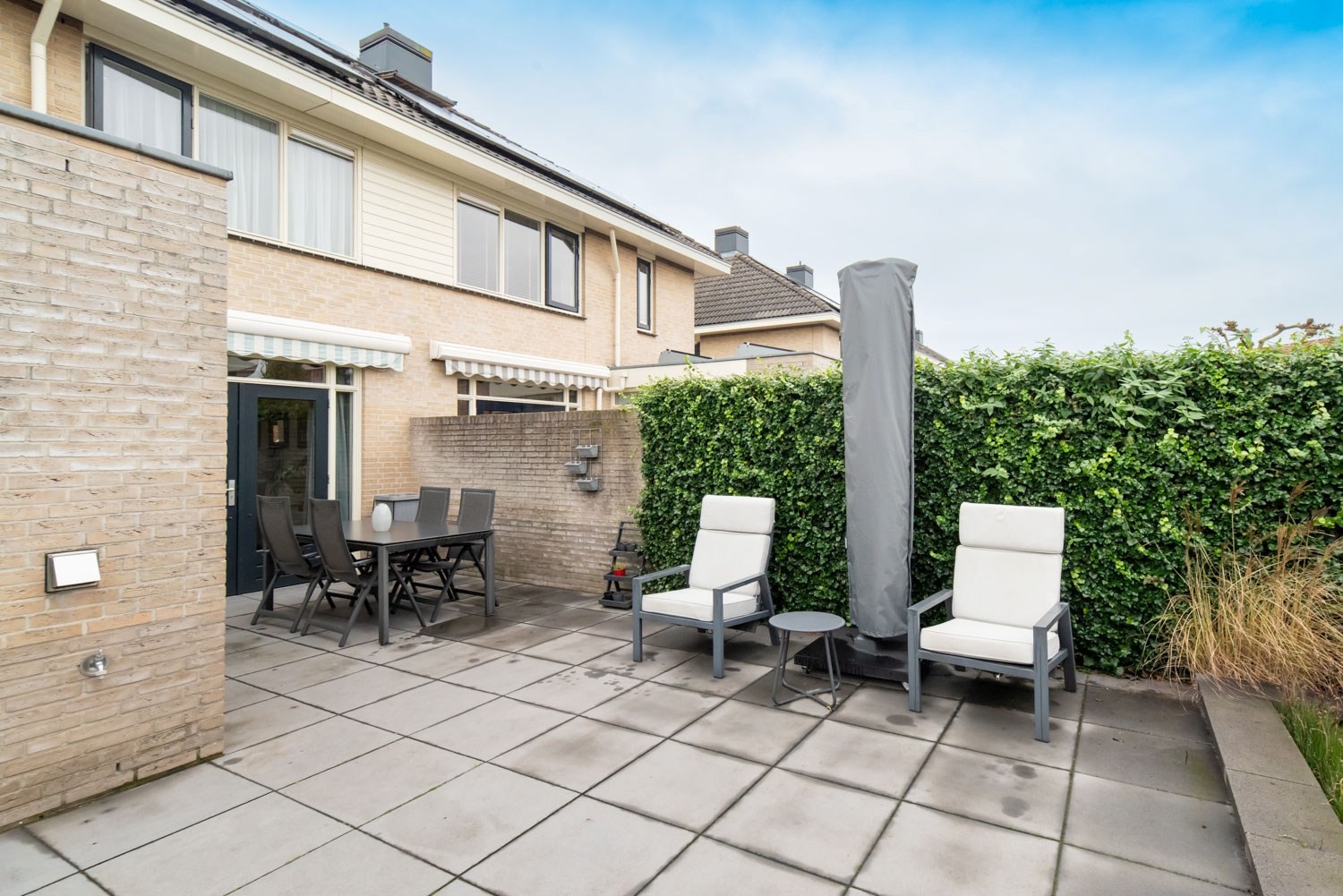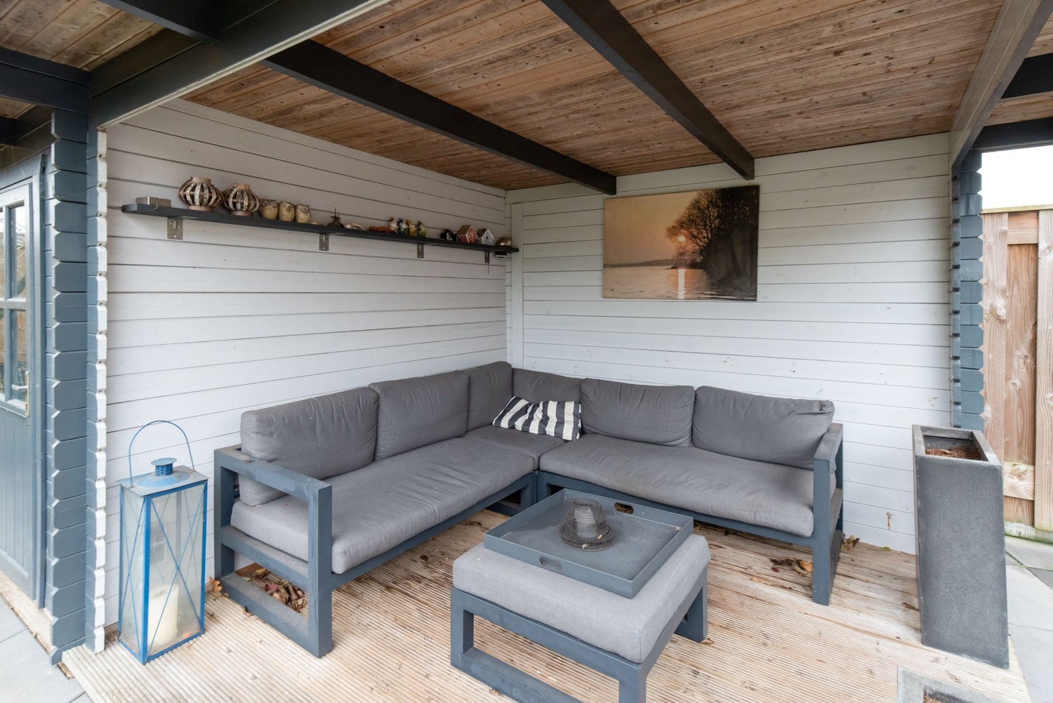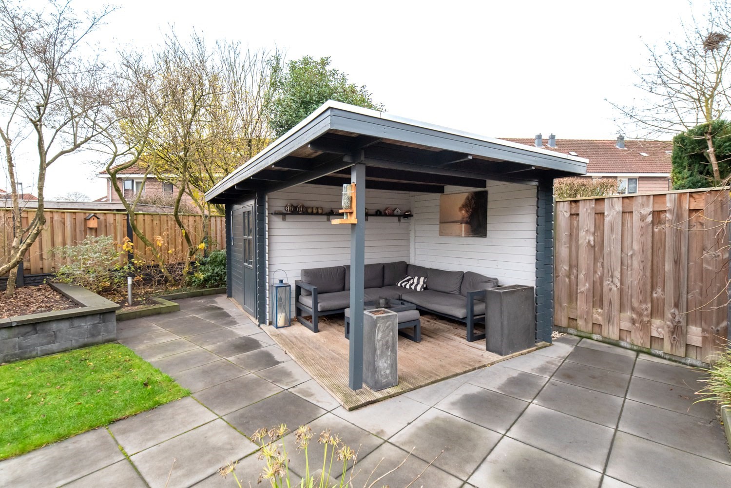 - achtertuin op zuiden: royaal, met veranda, vijverpartij en fraai straatwerk